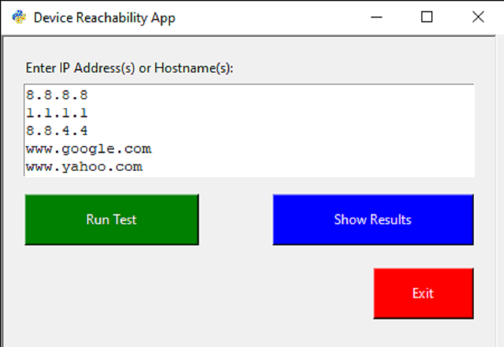 I created this app using the Python GUI package - Tkinter. This app is used to ping multiple devices all at once and return the results in a text file.
